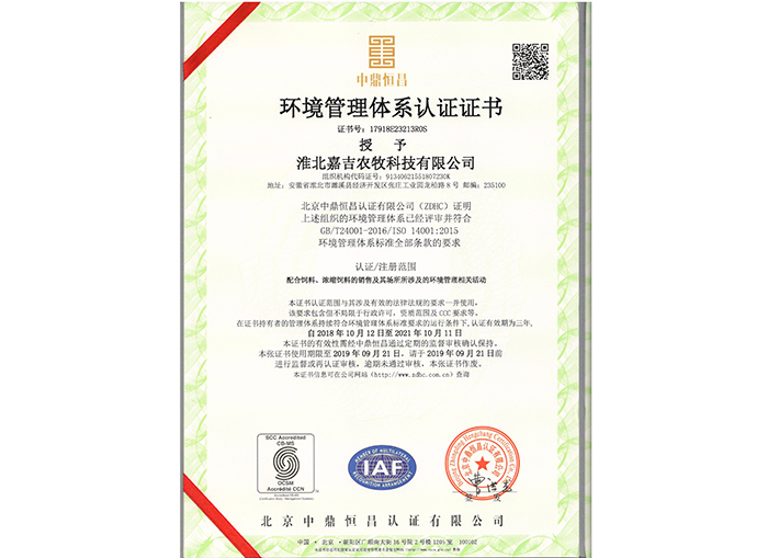 環(huán)境管理體系認(rèn)證書