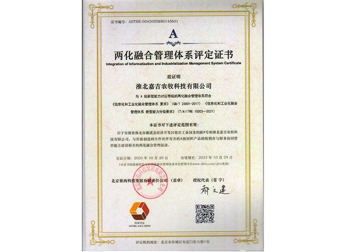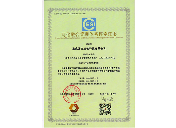 兩化融合管理體系評(píng)定證書