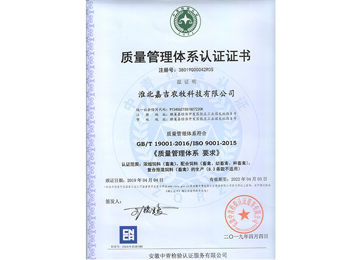質(zhì)理認(rèn)證證書