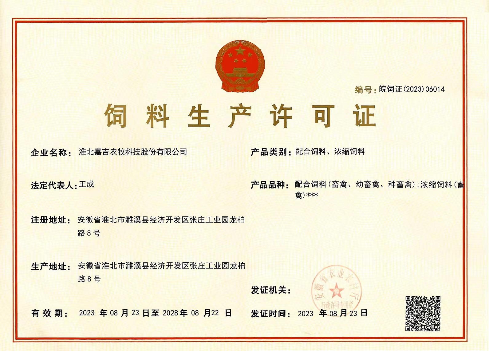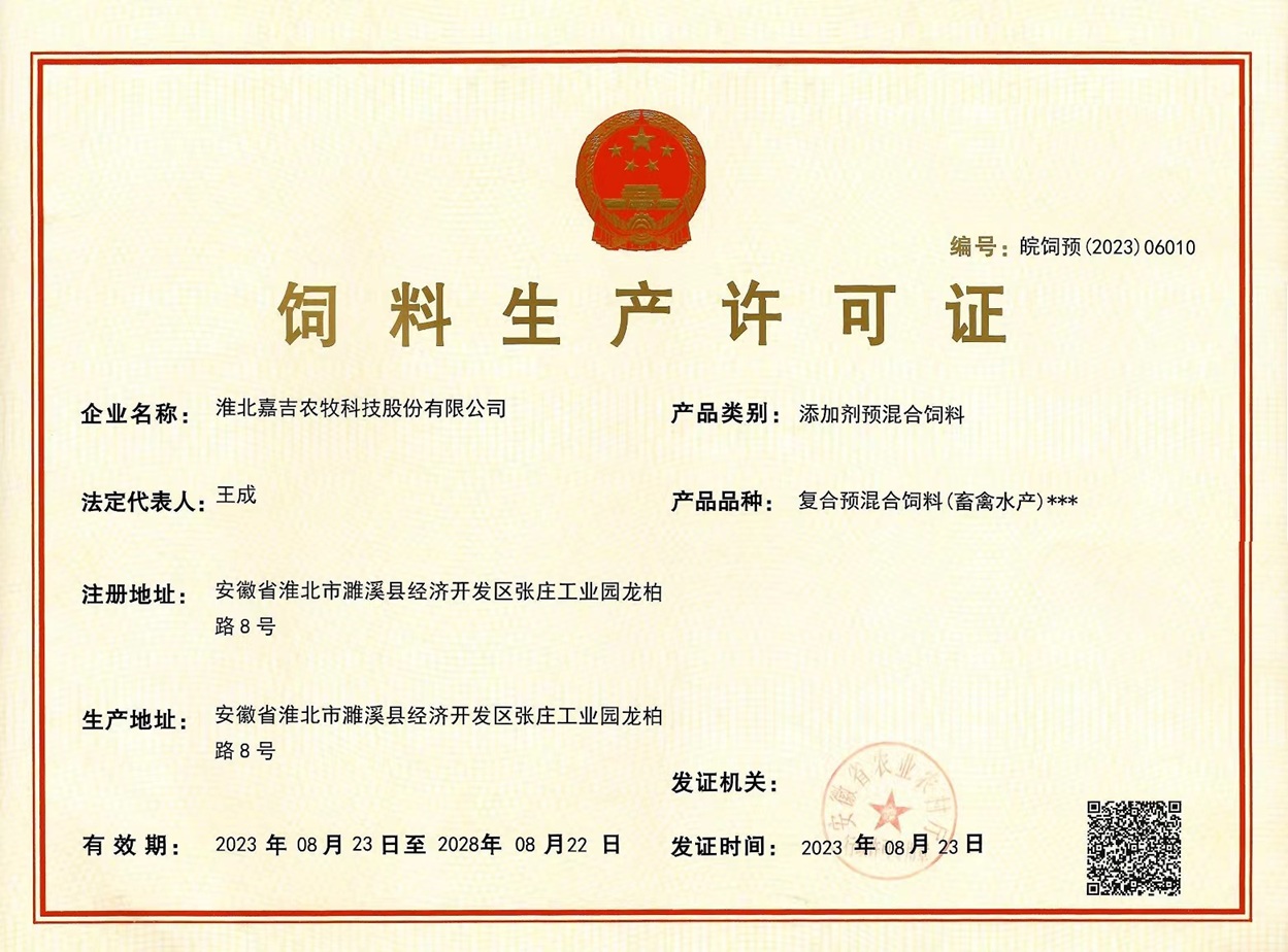 嘉吉預(yù)混料生產(chǎn)許可證