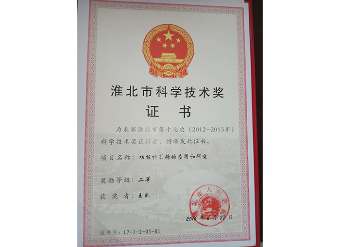 淮北市科學(xué)技術(shù)獎(jiǎng)證書