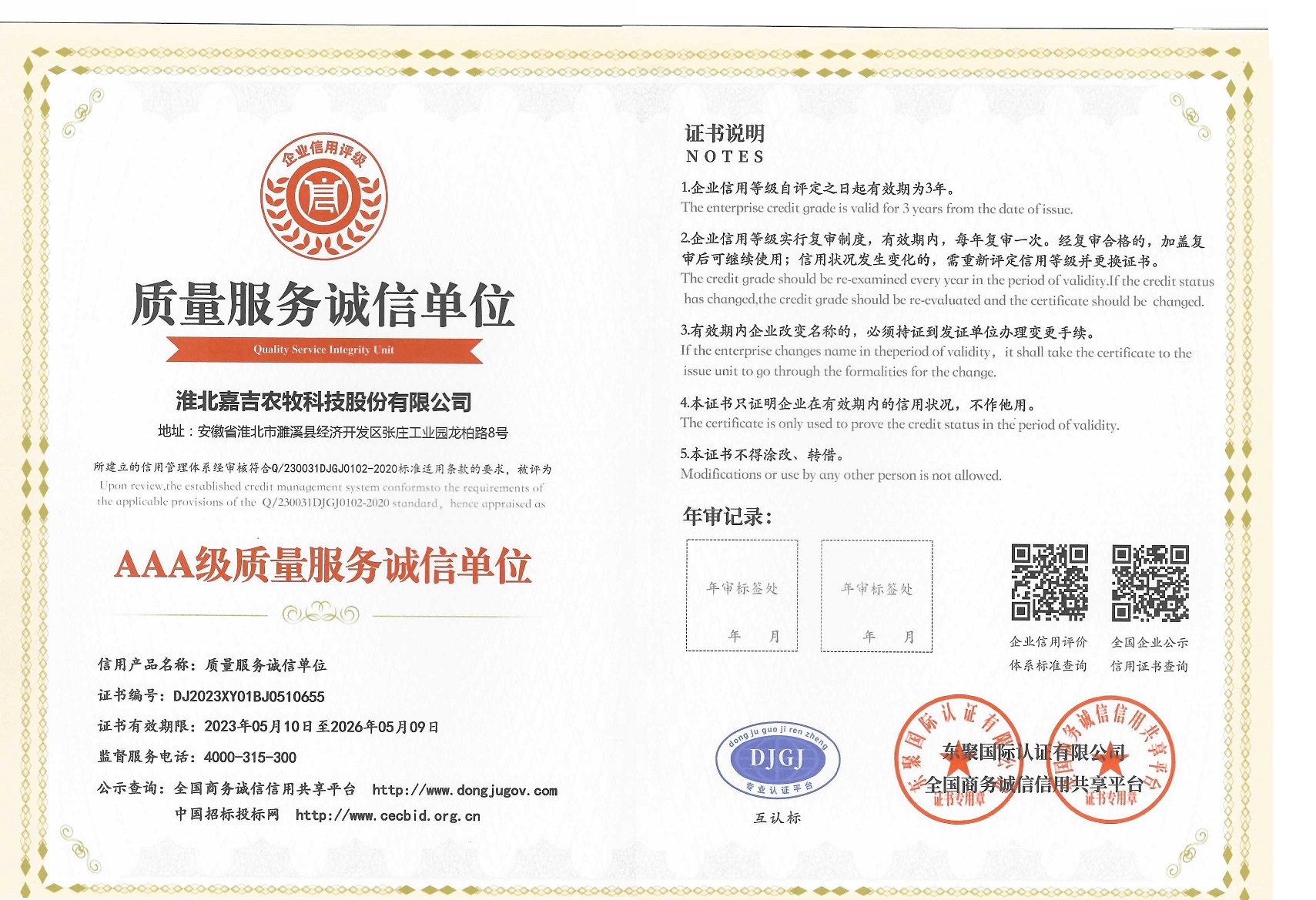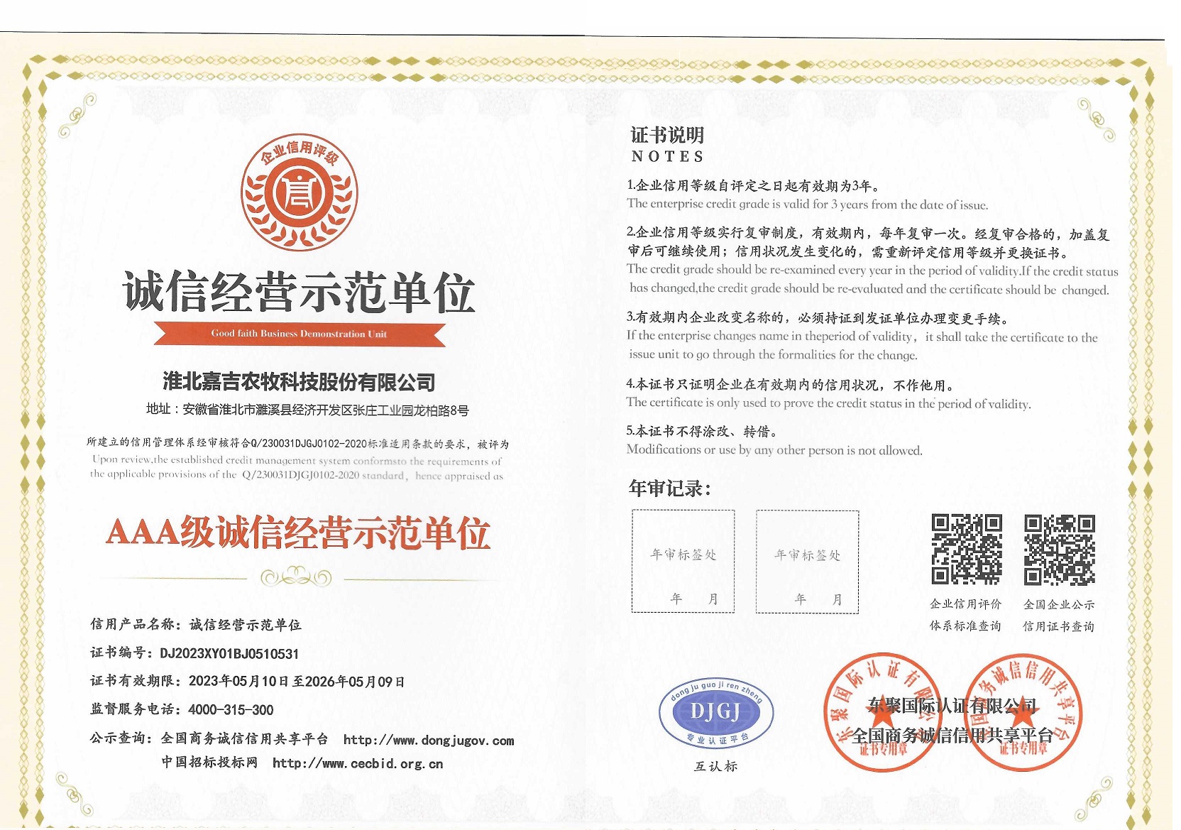 AAA級誠信經營示范單位